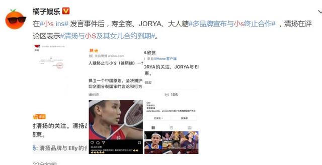 随着小S不当言论的公开,如今多个合作方已经终止了与小S的合作,在原则性的问题上面,没有退路可言。
