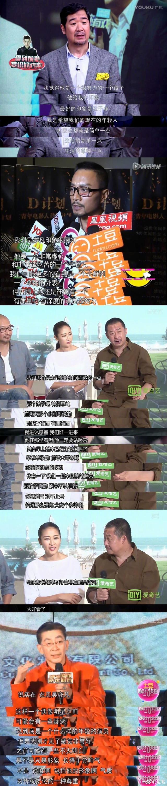 冯小刚:“他改变了我对年轻人的偏见,非常有礼貌,在片场虚心学习,非常阳光的孩子,充满正能量。”