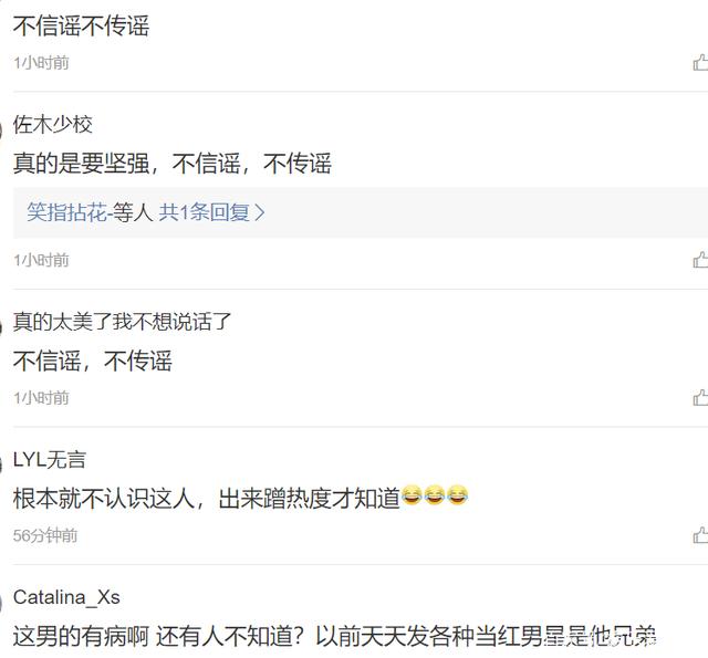 对此,很快就有资深网友发现,谢明皓就是个蹭子,说白了就是谁有热度,他就蹭谁,要么是声称自己即将要合作的,要么是诋毁别人,无中生有扰乱大家视线的,当然林俊杰和潘玮柏不是他的第一个目标人物,所以对于此次他的行为,相当一部分网友觉得不信谣不传谣就可以了,更有直言他的话G都不信