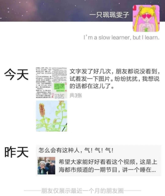 图中的账号名字是“一只珮珮雯子”,她表示文字发了好几次,但朋友都说没看见,所以试着发图片,将想说的都说出来。