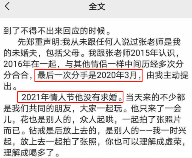 关于网上流传的求婚现场照片,她也做出解释。今年情人节那天,许多朋友聚在一起玩,张哲瀚只到场一小会儿。好友起哄之下,两人拍了合照,花是别人的。还有戴戒指的照片,都是她虚荣心作祟才会发出来。