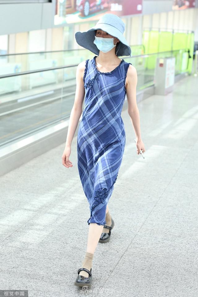 新浪娱乐讯 8月2日,邱天现身北京机场。照片中,她戴大檐帽搭蓝色格子裙造型文艺,身材婀娜有致气质佳。