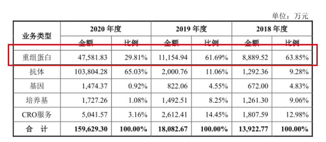 招股书显示,义翘神州是一家从事生物试剂研发、生产、销售并提供技术服务的生物科技公司,主要业务包括重组蛋白、抗体、基因和培养基等产品,以及重组蛋白、抗体的开发和生物分析检测等服务。