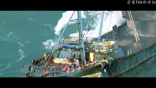 强风使得救生员像秋千一样被荡起,随时都会撞上失火船只上的障碍物,救援难度再次增大。