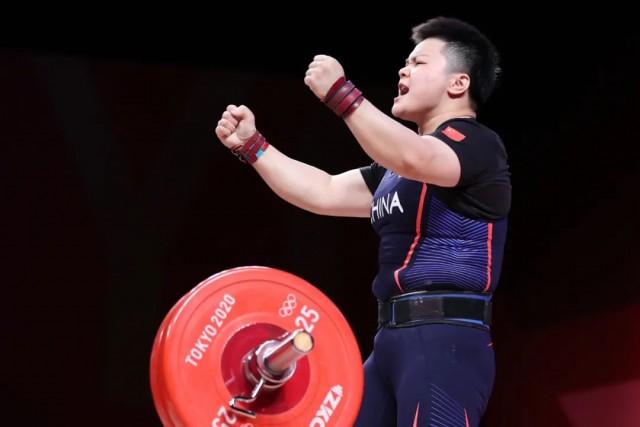 8月2日,在东京奥运会举重项目女子87公斤级比赛中,中国选手汪周雨夺得冠军。