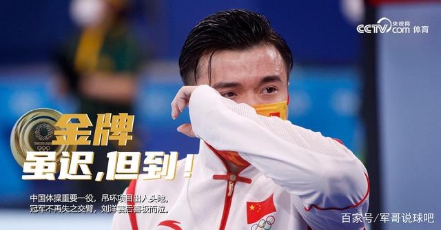 第26金,东京奥运会男子吊环决赛,中国选手刘洋和尤浩包揽金银牌,刘洋第三位出场,拿到15.500分拿到金牌,尤浩第二位出场拿到15.300分拿到银牌!夺冠后的刘洋累洒赛场!