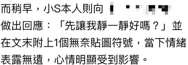 紧接着大人糖也宣布终止合作,小S一时之间损失了众多代言,直接让她直言自己需要“静一静”。