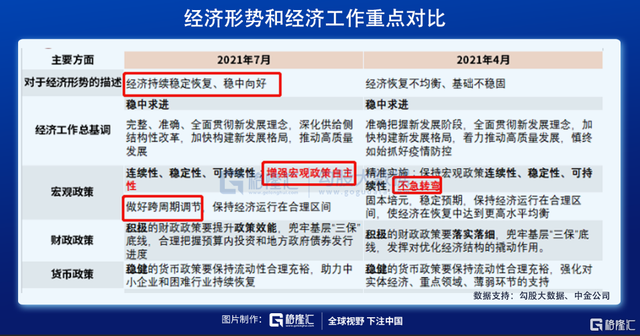 第二,罕见出现“跨周期调节”表态。我们平时听到的,见到的是“逆周期调节”,意思是经济下滑时,通过放水等措施对冲刺激,而经济过热时,收水加息等措辞抑制经济。