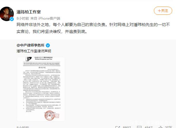 8月2日下午,另一位当事人,潘玮柏也是终于发声,大致相似的剧情,依然是事务所发布律师函起诉名誉权,这时谢明皓已经被禁言。潘玮柏评论区和林俊杰完全相反,网友全部质疑,律师函毫无作用,如果有用吴亦凡怎么会被抓,是造谣就报警,不要做没用的事情。