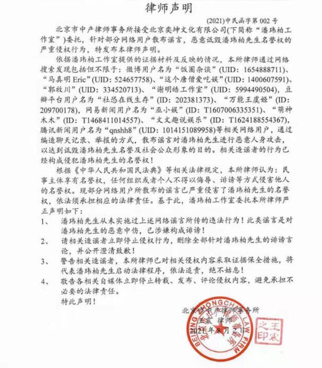 不过现在明星发律师函也是很轻松的事情,都是做做样子,不会真的上诉。虽然有的明星确实是被一些黑子辱骂,但人家也会真的提起诉讼。可有些明星却是发完律师函就没有下文了,只是给粉丝一个依仗去给自己洗白。所以即使林俊杰和潘玮柏发了律师声明,网友也没有选择相信,反而表示,还是等调查结果再说吧,如果真的犯错肯定是逃不过的,总有一天会被曝光的,就像这次吴亦凡一样。