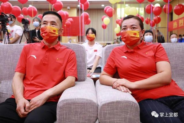 汪周雨的父母在湖北省奥林匹克中心观赛。