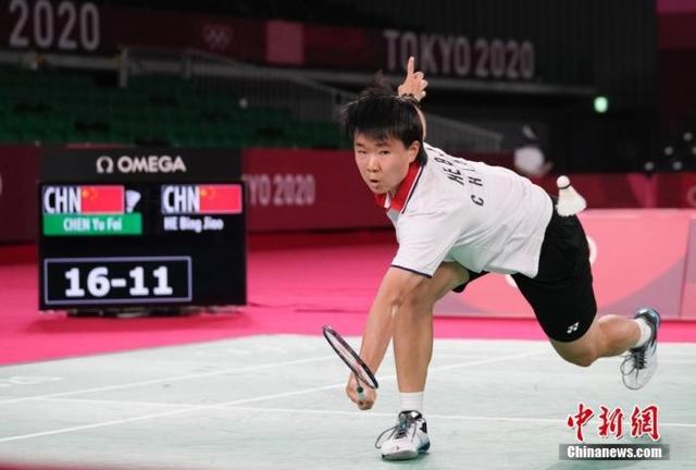 7月31日,东京奥运会羽毛球女子单打半决赛,中国选手陈雨菲2:1胜中国选手何冰娇晋级决赛。图为何冰娇在比赛中。 中新社 杜洋 摄