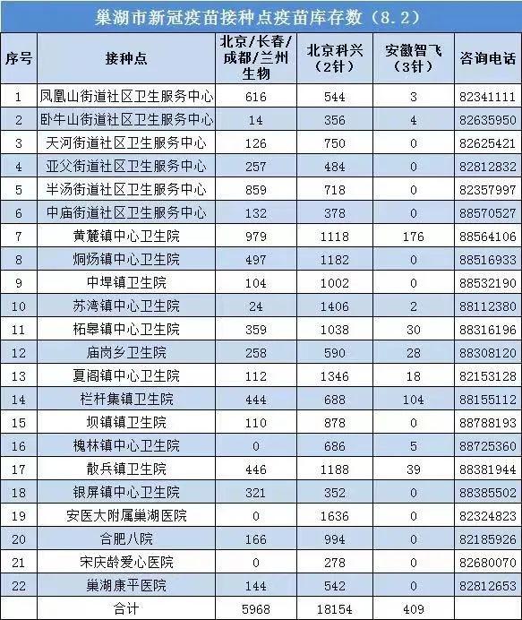 【摘要】 自8月1日起江苏扬州1个地区调整为高风险8个地区调整为中风险截至8月1日18时全国有4个高风险地区91个中风险地区8月2日巢湖市新冠疫苗接种点