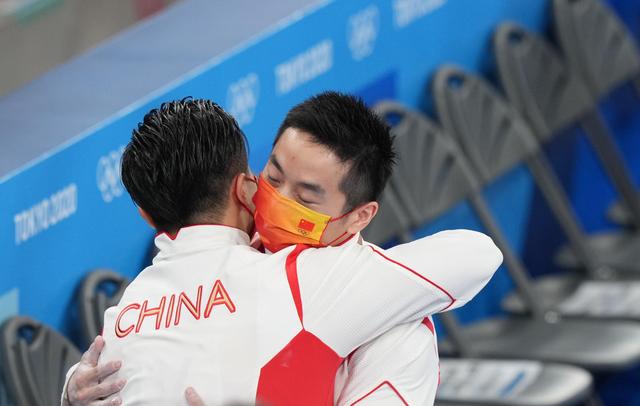 8月2日,尤浩(右)和队友刘洋在赛后拥抱。新华社记者 刘大伟 摄