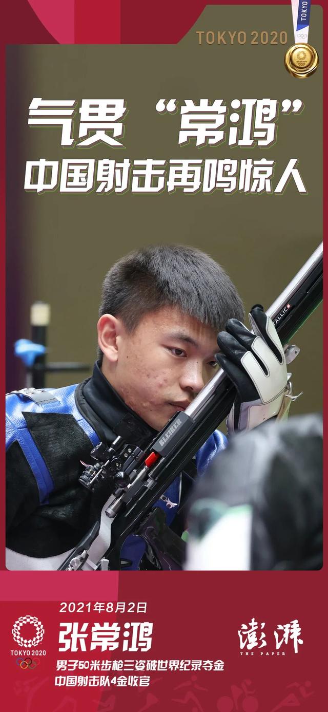 在东京奥运男子50米步枪三姿比赛中,中国男子选手张常鸿拿下金牌!同时打破世界纪录!