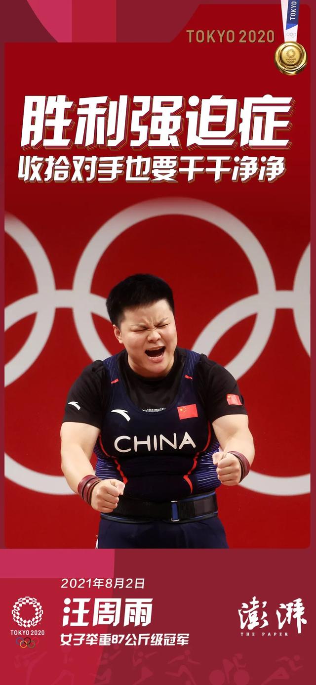 2日下午的东京奥运女子87公斤级举重决赛,汪周雨抓举120公斤,挺举150公斤拿下金牌!这也是中国举重队本次比赛的第六枚金牌。