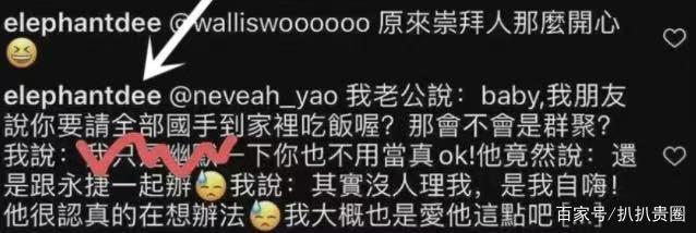 紧接着,这条动态的评论区下面出现了她回复网友的言论,透露她老公要请全部“国手”到家里吃饭,不难理解,这是“国手”指的是台湾的选手,而不是中国选手。