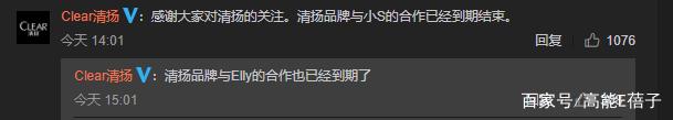 在一片争议声中,小S曾经代言的清扬最先发声。清扬官博表示品牌与小S的合作已经到期结束,与小S女儿Elly的合作也已经到期。