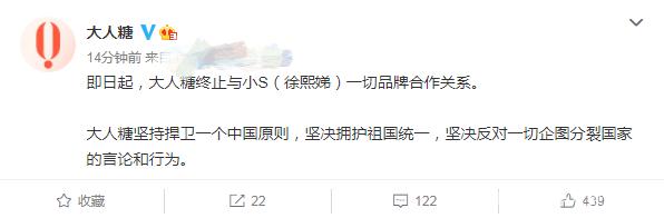 小S这几年来内地参加不少综艺节目的录制,也收获不少代言和观众的喜爱,如今因不当言论惹众怒。在大是大非面前,公众人物应该摆正立场,接下来,期待小S本人发文正面回应,并为自己的不当言论道歉,不然的话,小S面临的可能是网友们的抵制,以及更大的翻车。