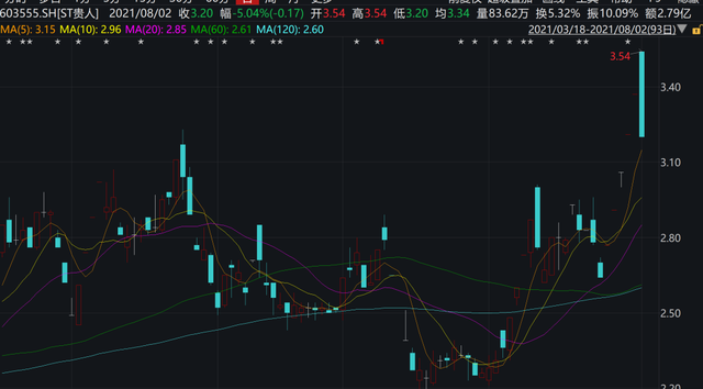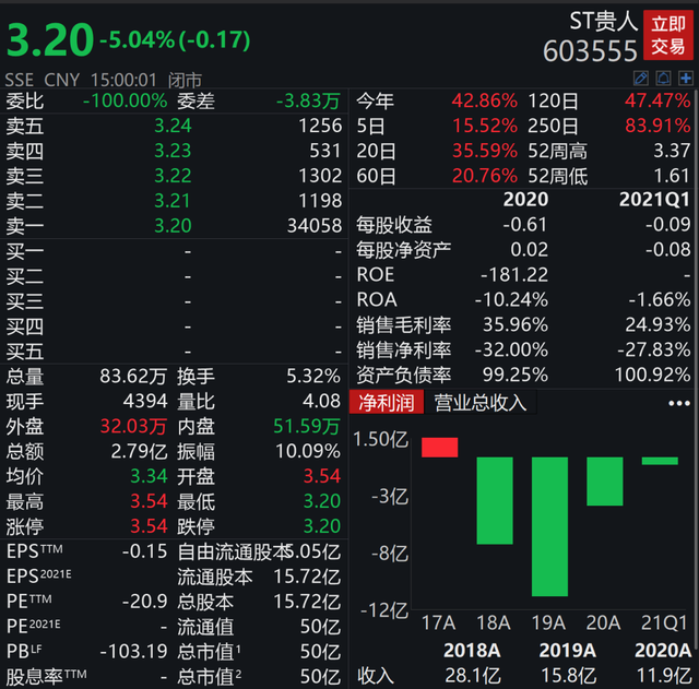 截至今日(8月2日)收盘,ST贵人报3.2元/股,总市值约50亿。