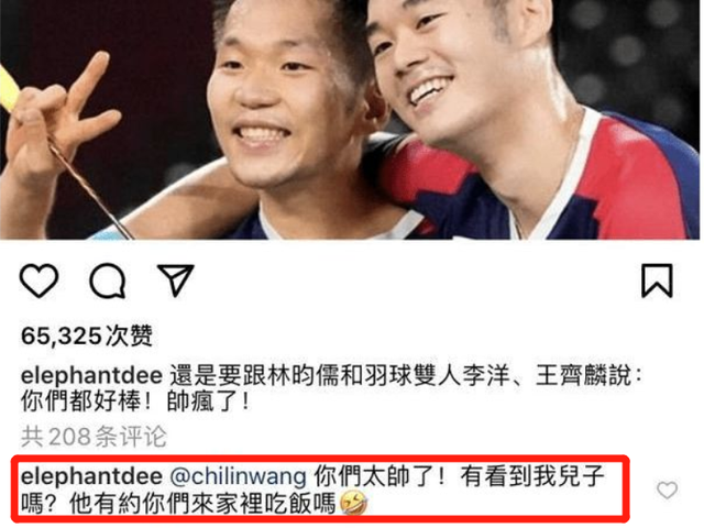 另外,小s继续被网友们扒出点赞评论了另一位羽毛球男选手的动态,表示两人帅气很棒,并且还让自己的儿子向两位羽毛球运动员约饭。