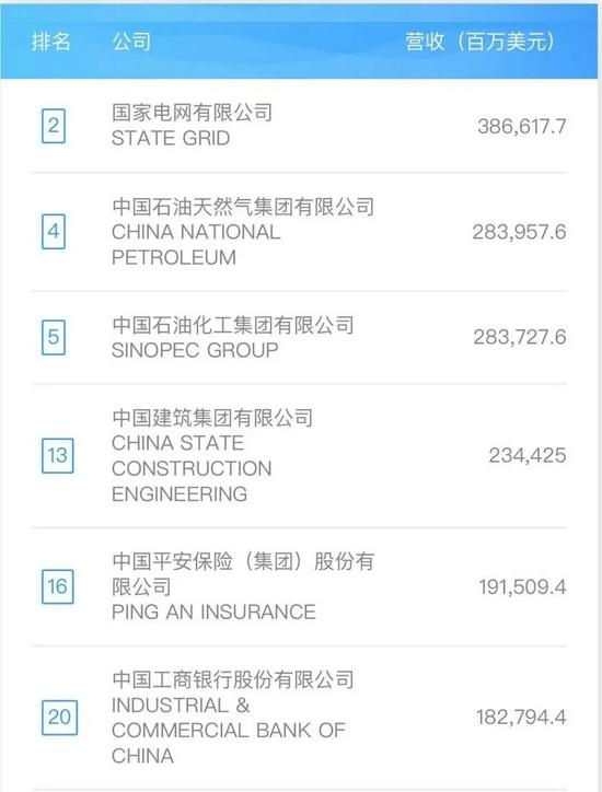 在榜单前20强里中国企业占据6席,依次是:国家电网(2位)、中国石油(4位)、中国石化(5位)、中国建筑(13位)、中国平安(16位)、中国工商银行(20位)。
