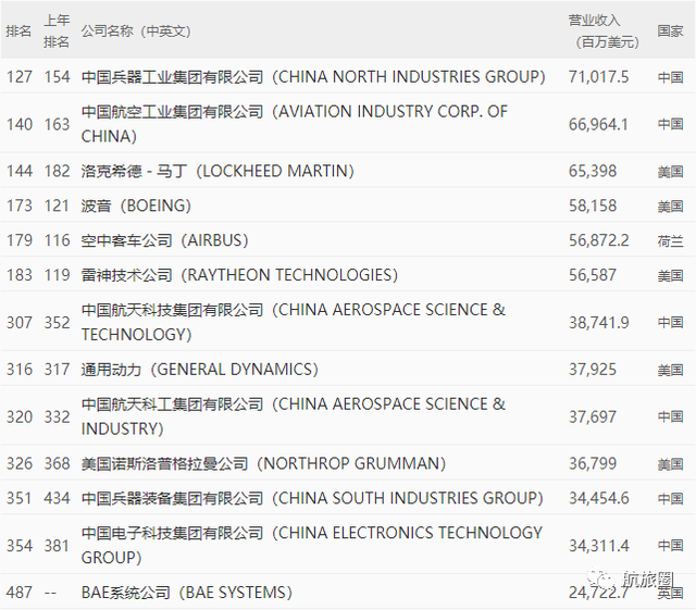 此外,与联合技术公司(旗下有普惠发动机、柯林斯航空系统)合并后的雷神技术公司排名也大幅下滑;赛峰集团则直接跌出前500。