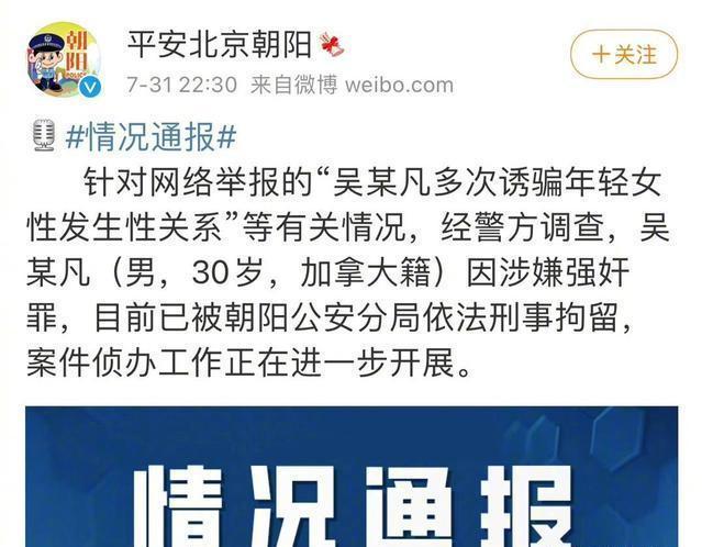 6月3日都美竹与吴亦凡的恋情曝光,到7月18日“决战”,再到7月31日北京警方官宣吴亦凡被刑拘的消息。时间仅仅过去了一个不到月。