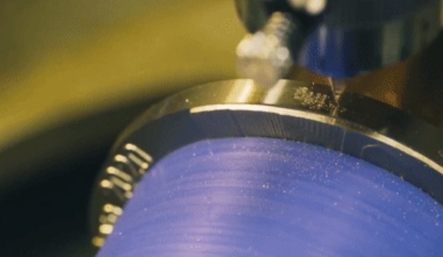 第四步,边缘雕刻。匠人们通过机械系统编程,在奖牌的侧面用英文将奖牌的赛事名称,及东京奥运会的LOGO精雕上去。