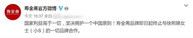 随后,大人糖、寿全斋也在官方账号发文称终止与小S的一切品牌合作关系。