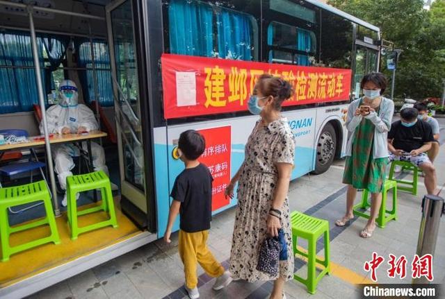 在建邺区,一百辆“核酸检测流动车”开进各个小区,为民众提供方便快捷的核酸检测补检。