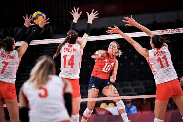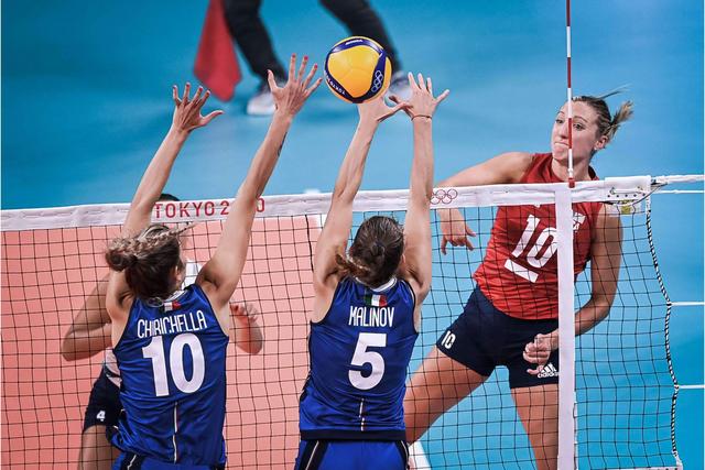 B组中,美国女排和意大利女排虽然同积10分,但美国女排拿到4场胜利,而意大利女排则只有3场胜利,所以美国排在第一位、意大利排在第二位。土耳其女排和俄罗斯女排则是积分相同、胜场数也相同,但土耳其比俄罗斯多拿一局,所以靠着局数优势排在第三,俄罗斯第四。