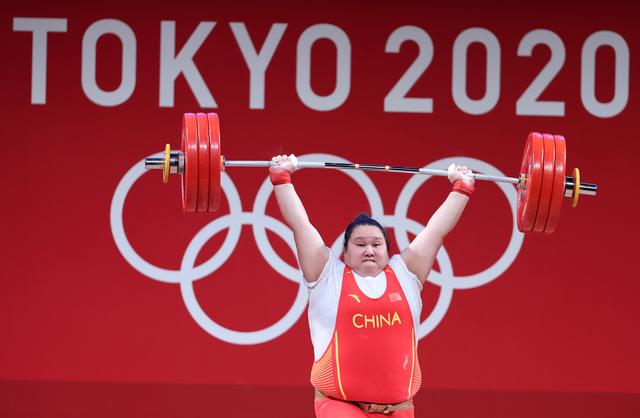 新华社照片,东京,2021年8月2日 (东京奥运会)(4)举重——女子87公斤以上级:中国选手李雯雯夺冠 8月2日,中国选手李雯雯在比赛中。 当日,在东京奥运会举重项目女子87公斤以上级比赛中,中国选手李雯雯夺得冠军。 新华社记者 杨磊 摄