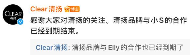 清扬也发文澄清,清扬品牌与小S及Elly的合作都已到期。