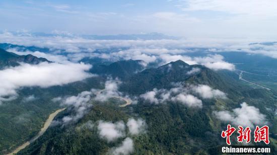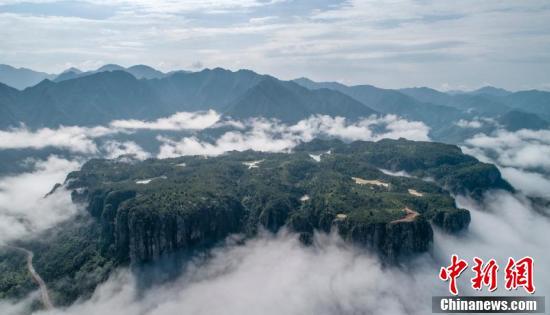 朱溪镇方岩背被云雾环绕。(无人机照片)