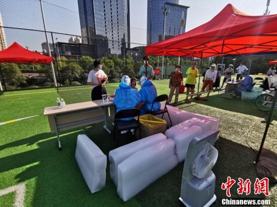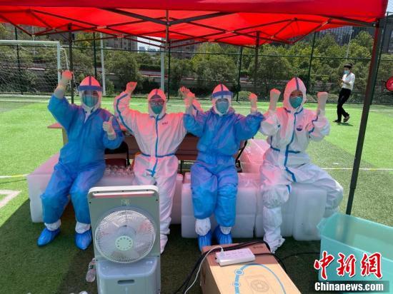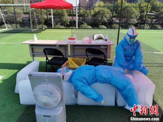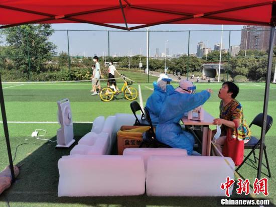 目前,郑州正在全员开展核酸检测,8月2日,由河南省肿瘤医院承担检测工作的一个室外检测点,医护人员被大块冰砖包围,在室外温度突破30℃的炎炎夏日,被防护服包裹得严严实实的医护人员可以在休息时抱冰短暂降温。