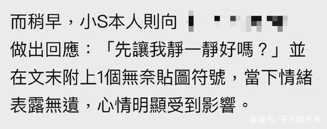 稍早,小s做出回应“先让我静一静好吗?”,能够看出来心情很复杂。