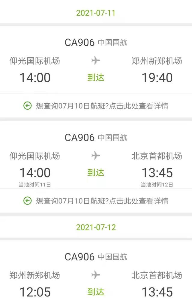 值得注意的是,市六院是境外输入定点收治医院,而在七月份,共有三班从缅甸仰光飞来郑州的境外航班CA906,于7月4日,7月11日,7月18日落地郑州。