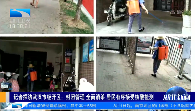 ↑武汉经开区对沌口街附近社区封闭管理。图据湖北电视台