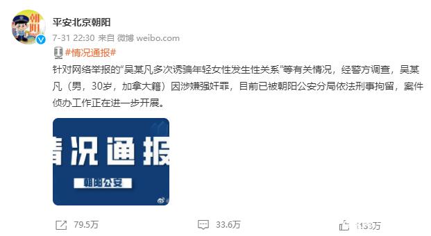不仅朝阳警方已经正式声明了吴亦凡犯了“强奸罪”;