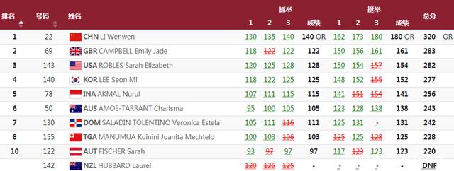 这场比赛,李雯雯是碾压所有对手,抓举140公斤,挺举180公斤,总成绩320公斤,创造奥运会纪录。再看看第二名,英国选手坎贝尔的最终总成绩是283公斤,对比李雯雯差了37公斤!这是中国举重代表团在本次奥运会上的第7金,也是中国体育代表团的第29金。