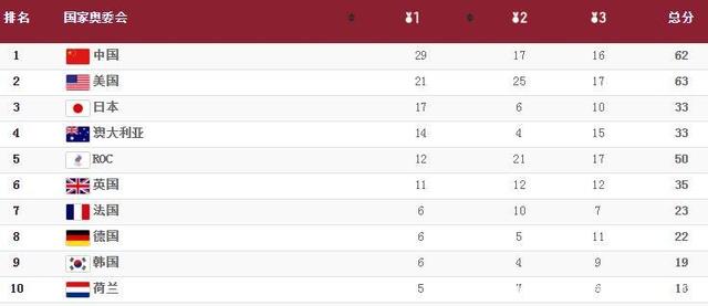 金牌榜上,中国队以29枚金牌高居第一,狂甩拿到了21枚金牌的美国队,而东道主日本的金牌数仍然停留在17枚。第11比赛日,邹敬园、尤浩联袂冲击男子双杠金牌,王宗源、谢思埸联袂出战男子3米跳板比赛,正常发挥就有希望拿下金牌,中国队即将突破30金!