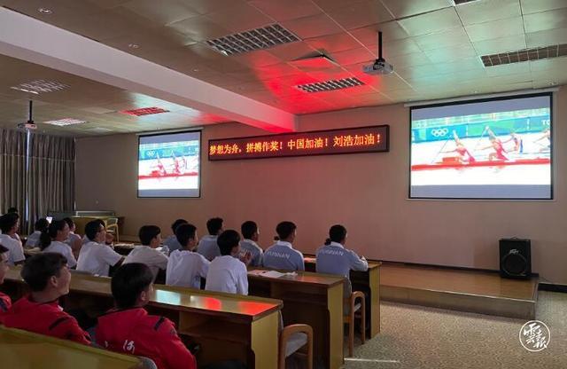 8月2日一大早,松茂体育训练基地就热闹起来,来自昆明、楚雄、玉溪、红河皮划艇队以及省皮划艇队试训队员、省残疾人皮划艇赛艇队等100余名运动员、教练员早早地就来到基地大会议室,等待刘浩的比赛。刘浩家乡的玉溪市体校,更是组织了近200名师生为刘浩加油,随着刘浩/郑鹏飞组合出现在转播镜头中,现场顿时响起热烈掌声。