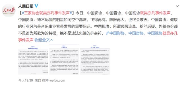 目前,吴亦凡只是被刑事拘留,还在等待后续进一步的调查。然而吴亦凡的相关内容已经被全网封杀了,他的微博超话甚至贴吧粉丝群都被关闭了,之前曾站队发表言论支持过吴亦凡的编剧六六、马薇薇的微博也被禁言了。中国影协、音协、视协就吴亦凡事件发声,坚决抵制吴亦凡这类劣迹艺人,吴亦凡成为了第一个遭到全网完全封杀的流量艺人。
