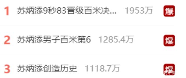 比赛结束后,苏炳添三个字立即引爆网络,抢占多个热搜。