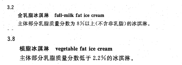 以博主“游戏打折情报”列举的某品牌全乳脂冰淇淋和梦龙植脂冰淇淋为例,“全乳脂冰淇淋”指的是主体部分乳脂质量分数为8%以上(不含非乳脂)的冰淇淋。而“植脂冰淇淋”指主体部分乳脂质量分数低于2.2%的冰淇淋。