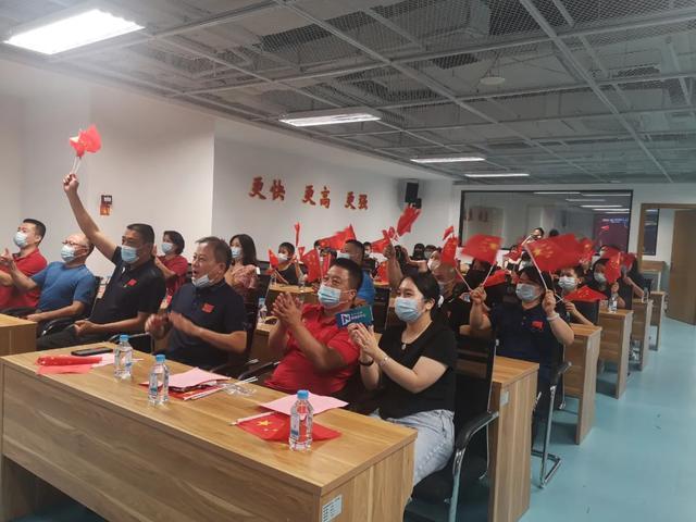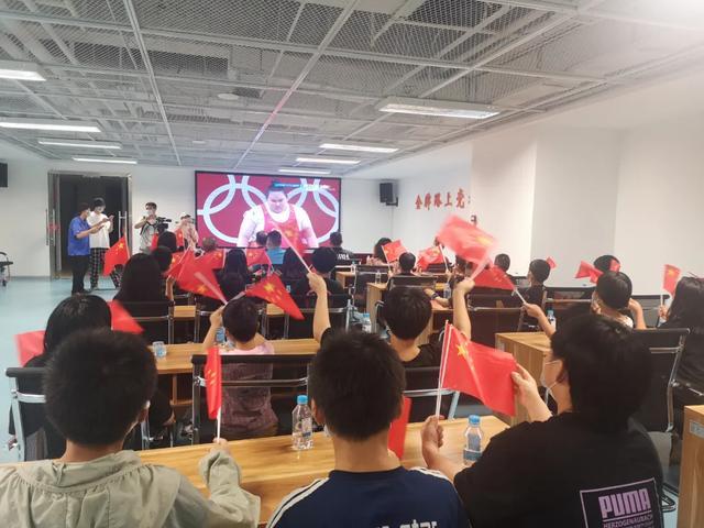 福州市体育系统部分干部职工和福州举重队员一起收看比赛