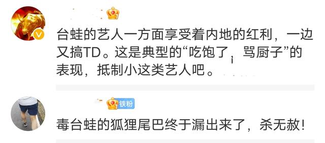 网友A:台蛙的艺人这方面享受着内地的红利,一遍又搞TD,典型的吃饱了骂厨子。