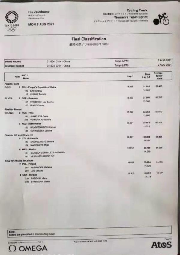 在今天的东京奥运会自行车女子团体竞速赛金牌争夺战中,24岁的河南选手鲍珊菊与名将钟天使配合,以31秒895的成绩夺取了河南自行车项目的第一枚奥运会金牌。