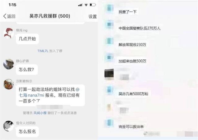解救凡凡群1167名成员吴亦凡粉丝要劫法场?不是我理解的人类行为!再看看这个“吴亦凡救援群”,也有500人,还要劫法场?小编再次震惊,吴亦凡的粉丝都这水平吗?难怪那么好割韭菜。小编无语了,看看网友如何评论他们吧,“战斗民族只需200人就可以把这5000万脑残打得哭爹喊娘”“图一一看就是友军”“真不是反讽吗?感觉不是我理解的人类行为”“人均年龄10岁”“枪:你们当我不存在吗?”“这哪里是5000万脑残粉啊?明明是一堆钱堆出来的数据啊!”